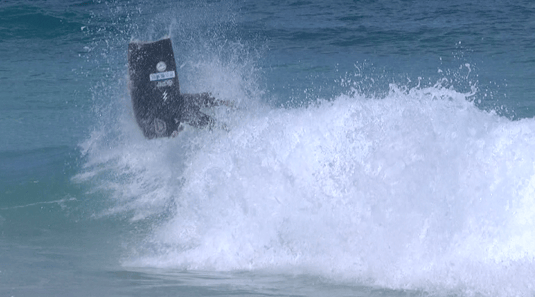 フィンがないのでレールワークの大切さがわかるライディング。